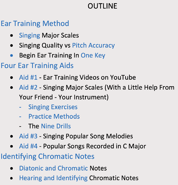 - exercises, songs, and a guide to various ear training resources on YouTube and