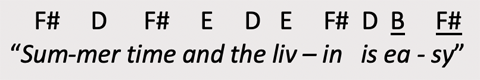 the note B, three half-steps below the major tonic note D. Thus, the song is in