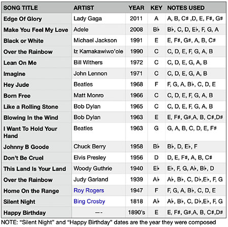 popular song melodies the notes generally lie within a universal SEVEN-NOTE