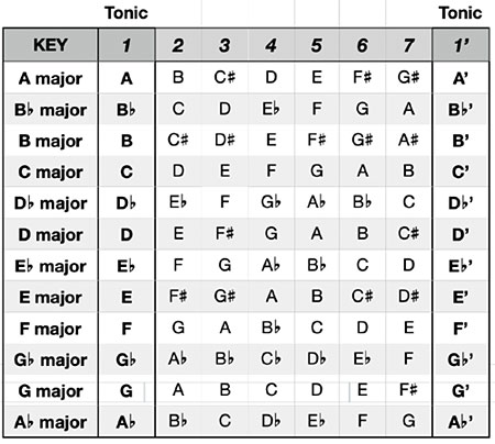 note of the major Key using your instrument. The tonic is scale degree 1.